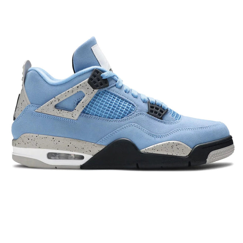 Designed for both performance and lifestyle wear, the sneaker features signature mesh paneling, supportive wing eyelets, and a visible Air unit in the heel for responsive cushioning and all-day comfort. Finished with classic Jumpman branding, the Air Jordan 4 “University Blue” is a must-have for sneaker collectors and streetwear enthusiasts alike.