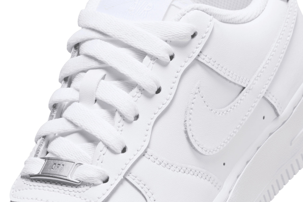 Iconic AF1 design: Clean, classic white leather that never goes out of style.