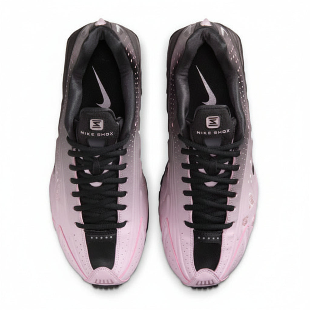 The Nike Shox R4 “Sakura” brings feminine flair and bold performance design together with a striking Pink/Black colorway and cherry blossom-inspired graphics. Drawing inspiration from the delicate beauty of sakura blooms, this version adds standout aesthetic detail to the classic Shox silhouette while delivering the responsive cushioning and dynamic style Nike is known for.