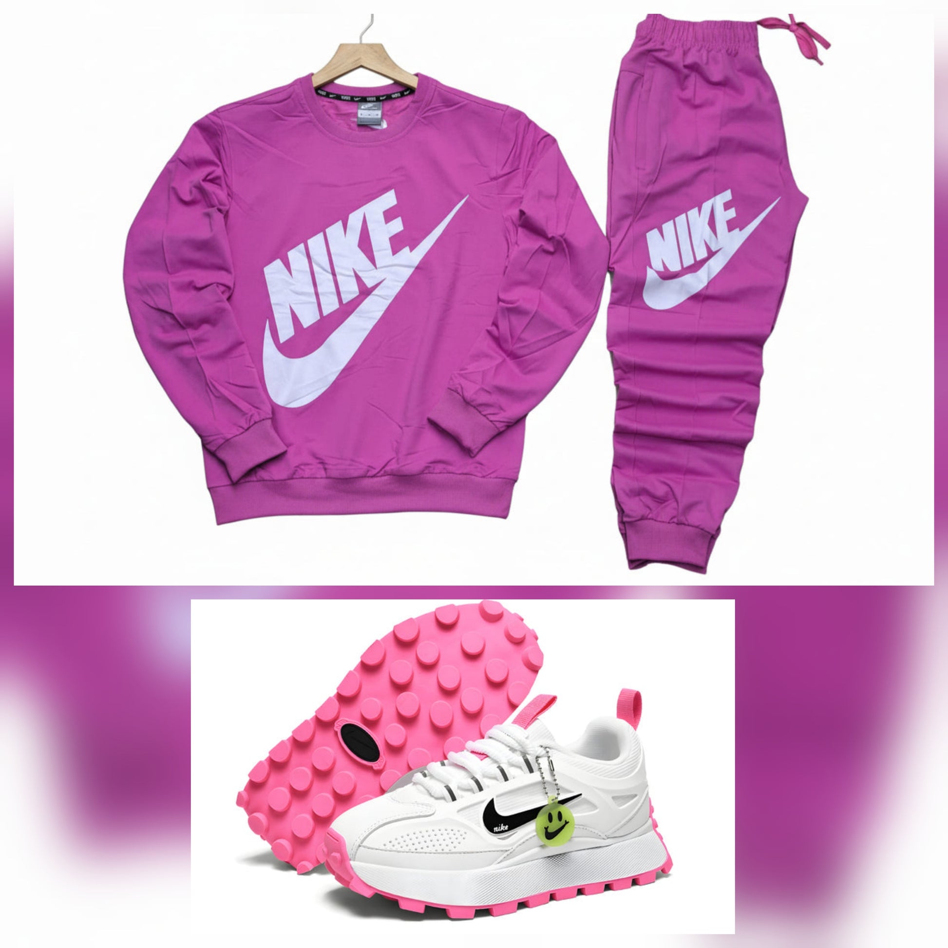 Get ready to elevate your fitness and lifestyle wardrobe with this Nike Combo Set featuring the Nike Women’s Dri-FIT Get Fit Graphic Crew and Nike Bailleli White/Pink Sneakers. The Dri-FIT crew top is engineered with moisture-wicking technology to keep you dry and comfortable during workouts, while a bold graphic adds sporty attitude to your look. Paired with the stylish Bailleli White/Pink sneakers, this combo delivers all-day comfort and standout style. With cushioned support, breathable materials, and Nike’s signature design details, this set is perfect for gym sessions, brisk walks, or casual weekend wear.